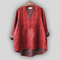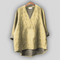 An elegant linen blouse in a warm golden tone with subtle embroidered patterns that add luxury and sophistication. It features a V-neck in a crossover design and an asymmetrical hem with a longer back for a modern look. Its relaxed fit offers comfort and style, making it ideal for elegant casual combinations as well as special occasions.