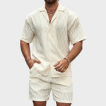 This casual men's set combines the best of relaxed elegance with the ideal comfort for everyday wear. Comprising a lightweight short-sleeve shirt and trousers with an elastic fit, it is perfect for those who want to maintain style with practicality. Fresh, versatile, and modern, it accompanies you on outings, trips, or even moments of rest with great taste.
