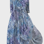 This long dress in shades of lilac and blue combines romance and elegance. Its unique floral pattern with flowers adds a sense of freshness, while its light fit makes it ideal for spring and summer appearances.