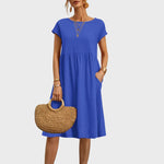 Bring a touch of effortless elegance and comfort to your summer wardrobe with the Elinor Ibiza Women’s Dress. Designed in a flowing empire style, this dress combines grace with freedom of movement. The knee-length cut, short sleeves, and practical side pockets give it a unique charm, while the lightweight, breathable fabric keeps you cool and comfortable all day long. Whether worn on its own or layered with a jacket, this versatile piece is bound to become your go-to favourite for any occasion.