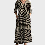 Bring timeless charm to your wardrobe with the Eve Vintage Stripe Dress. Featuring a flattering V-neckline and a classic striped design, this ankle-length dress combines elegance with everyday ease. With its soft fabric and practical side pockets, it’s the perfect choice for both casual outings and relaxed days in style.