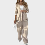 Flattering cut – wide legs visually elongate, while the blazer nicely shapes the silhouette.